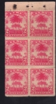 Scott: 228b ($5500.00) Booklet pane of this scarce issue. Complete pane stuck to separating tissue. Poor centering. UNUSED NEVER HINGED..