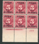 Scott: J3 ($630.00) BLOCK OF SIX unused lightly hinged with original gum. Small perforation separation.