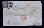 Lot #100 | Year: 1866 Scott: 25 Variety "B" almost gone on cover to Barcelona. |