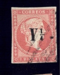 Lot #52 | Year: 1857 Scott: 12var Edifil: 7it CORFOS variety on used single with hinge mark. |