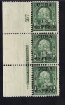 Lot #283 | Year: 1899 Scott: 222 ($115.00) Plate strip of three unused never hinged with original gum. |