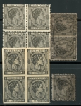 MINISTERIO DE ULTRAMAR muestra marking on block of 12 with light hinge mark.