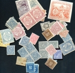 Lot #710 Thirty different tax stamps. Edifil 1, 8, 9, 14, 30, 44, 46, 52, 53, 61, 63, 64, 65, 74, 75, 77, 79, 81, 91, 92, 93, 94, 95, 96, 97, 98, 99, 100, 101. 102 plus duplicates. Mostly used. |