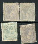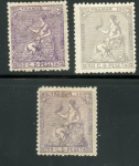 Scott: 72 var Edifil: 40a,b,c (56.00€) Color varieties grey lilac. Blue grey, and grey violet. Unused.