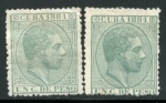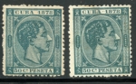 Lot #174 | Year: 1880 Scott: 91 var Edifil: 59a,b (7.00€) Color varieties blue green and grey ultra. |