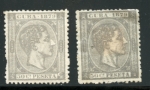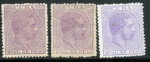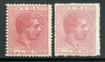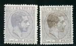 Lot #197 | Year: 1883 Scott: 124 var Edifil: 96a,b (100.00€) Color varieties violet and ultra. Unused with hinge remnants. |