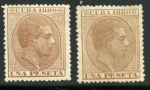 Lot #153 | Year: 1878 Scott: 78 var Edifil: 46a,b (25.00€) Color varieties olive brown and brown with fine impression. Unused. |