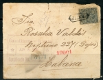 Lot #255 | Year: 1914 Scott: J5 Six of the 1 cent value on letter to Habana. Opened by censor. Six sided "T" and handwritten "6". |
