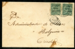 Lot #276 | Year: 1917 CHAMBELONA RUBBER STAMP OVERPRINT. Camaguey to Holguin cover with only known pair of 1c stamps overprinted CAMAGUEY-EJERCITO CONSTITUCIONAL in violet ink. As per the booklet published by Dr. R. Rosende on this issue he concludes that although this is a controversial issue, if he were to accept its validity, it would be for these rubber stamp overprints. |