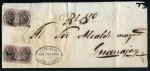 Edifil: 7 (100.00€) Four one ounce stamps on cover. Jones And Roy 02a, b.