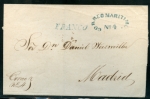 CORREO MARITIMO No. 4 and straightline FRANCO markings on letter to Madrid.