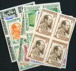 Scott: 463-5, C44-6, E14 ($3000.00) IMPERFORATE BLOCKS OF FOUR. Unused never hinged. Only one sheet of 100 known for each value.