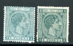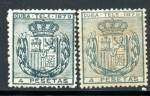 Edifil: T35 & 35a (7.00€) Both color varieties of the 1 peseta value unused but hinged.
