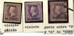 Scott: 224 3c violet three stamps one with the variety dot between B and A. Teo unused and one used.