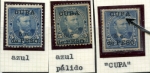 Scott: 225 ($85.00) 5c blue three unused stamps with color and CUPA varieties. All three unused never hinged and with original gum.