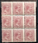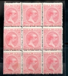 Scott: 143 ($36.00) 2 1/2 rose block of 9. Unused with one stamp hinged and original gum.