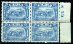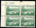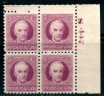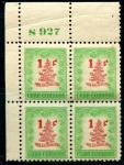 Scott: 498 ($38.00) PLATE BLOCK NUMBER S927. MNH.